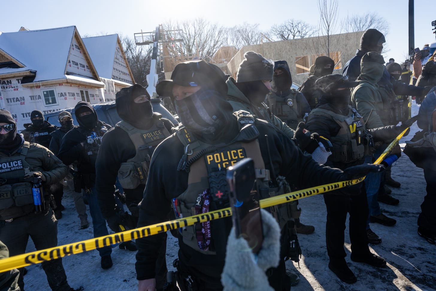 In a Minneapolis suburb this week, masked men wearing ICE vests—who refused to present a warrant or identify themselves—roped off a construction site, trapping two workers on a partially built roof for hours in subzero temperatures. It was so dangerously cold that “at least 30” masked federal agents present took shifts rotating in and out of their cars to stay warm, a state representative on the scene told local media.